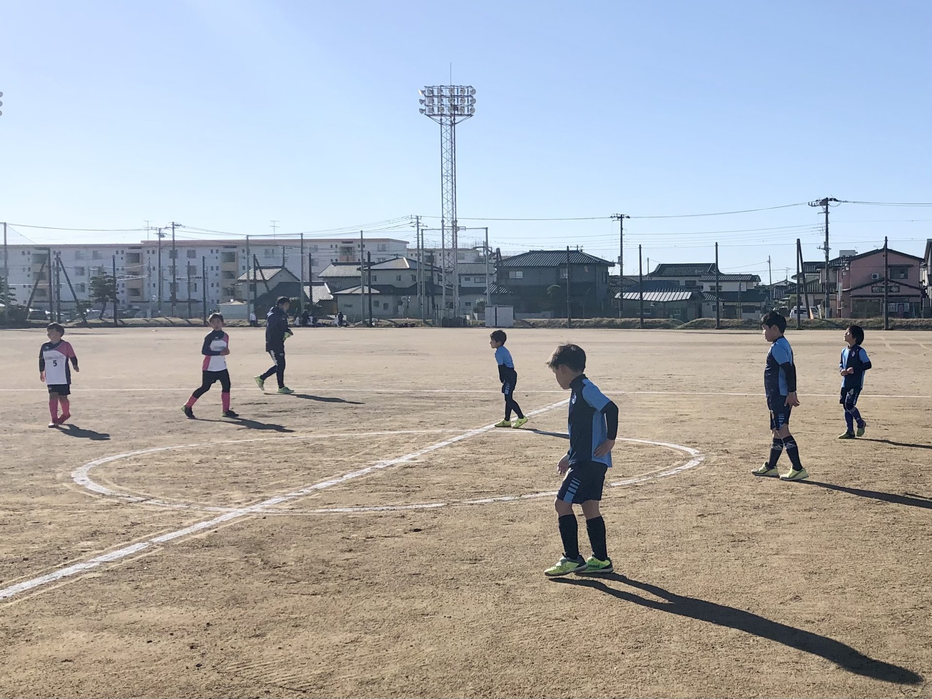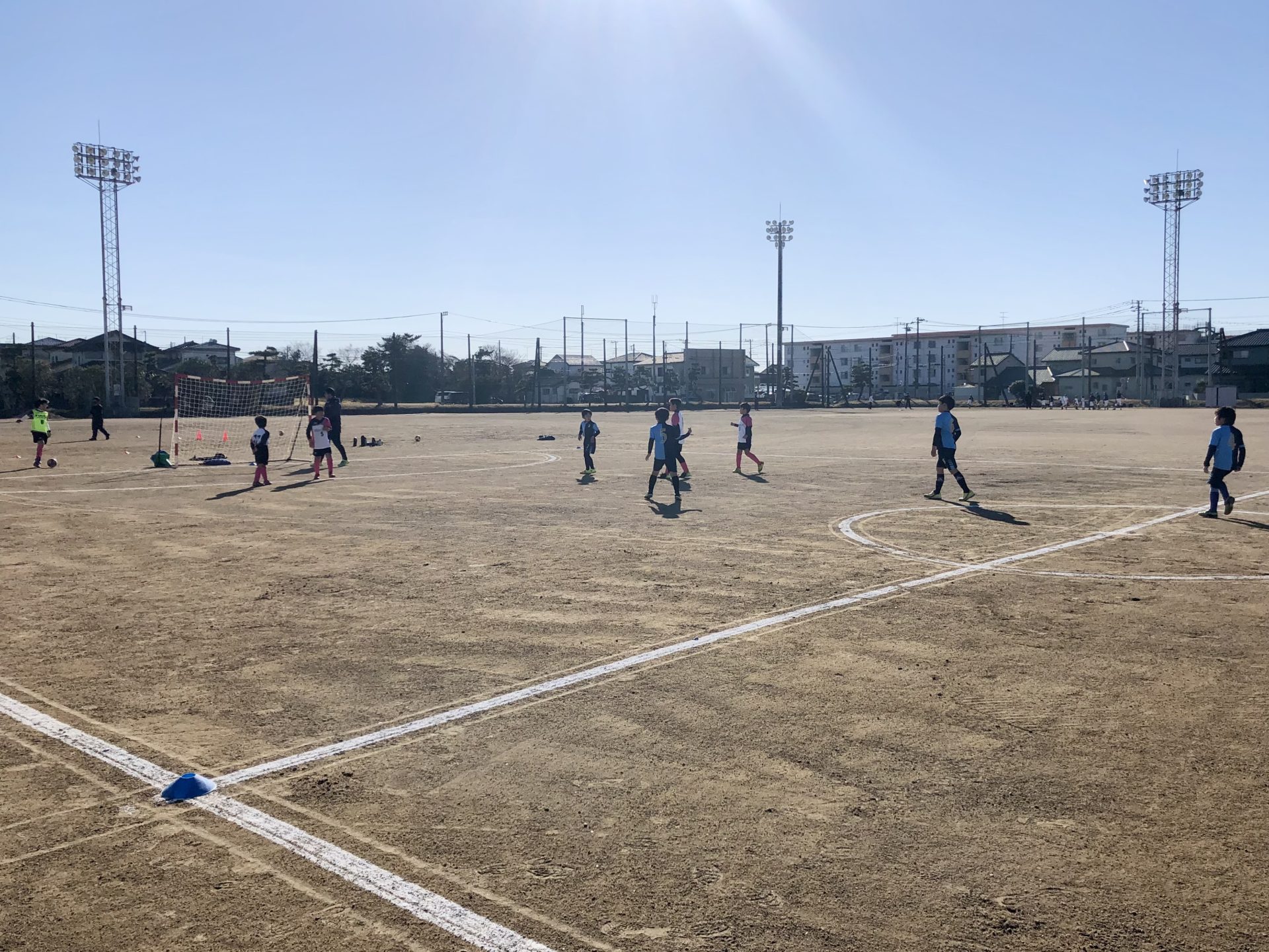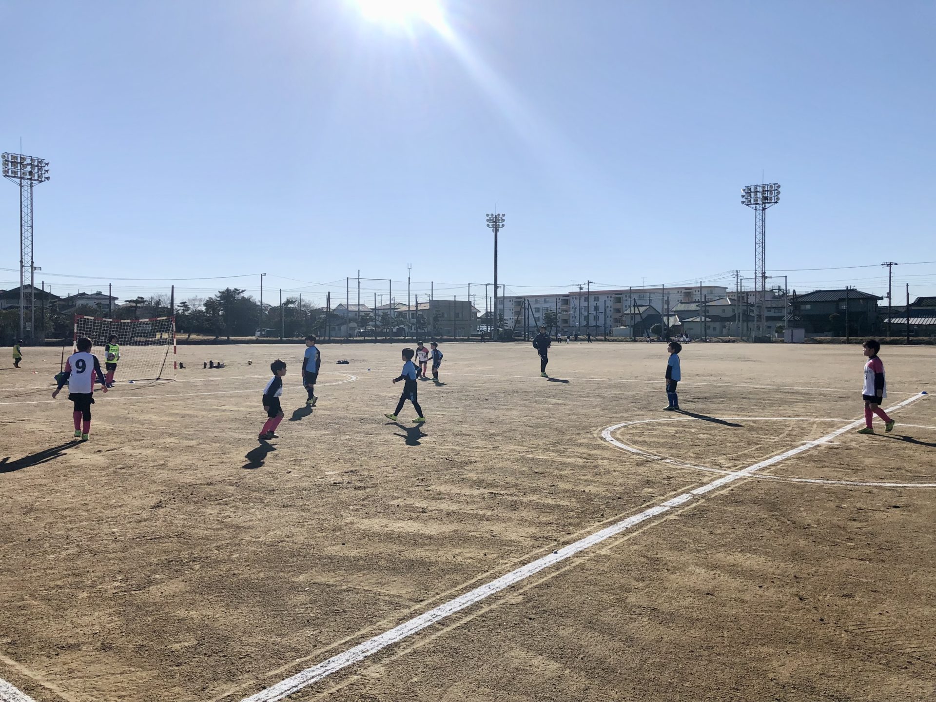今回のU-9大会はアウトドアであり、土のグラウンドというメテオロッサにとっては初の試みでした。また、海の側ということもあり寒さや天候を懸念していましたが、当日はとても良い天候に恵まれました。外で行うスポーツにとっては最高の状況です。その中で、メンバーの5人とジュニア選抜クラスより2名のメンバーが、自分たちの大会(来週1/29)を前に後輩たちを応援しようと駆け付けてくれました。