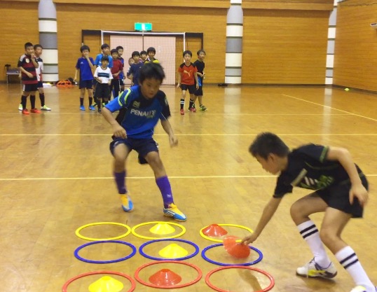 「これってフットサルに関係あるんですか?」と聞いてきた。このスクール生はジュニアコースの中ではダントツにボールタッチがうまい。ドリブルさせれば取る事が難しい。そんな彼のイメージではボールを使う事が第一にあるようだ。確かにボールを人よりも多く触っていればコントロールは上達する。しかし、フットサルもサッカーと同様団体競技。自分のスキルをいかに仲間の為に使うかという事も大切になる。そこには素早い判断が必要だ。状況を瞬時に理解し、行動に移す。これがとても大切になる。